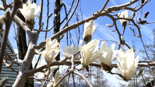 ガーデンGREEN WALKから白さ際立つハクモクレン。 GREEN WALKでは、アルジが好きなハクモクレンが満開になりました。1、2年前に剪定しすぎて、こじんまりとしたモクレンの木。この時期の庭の花木には花がないので、唯一モクレンの白い花は目立つはずですが、何本もあるのに剪定のせいで存在感が・・・ 2026.04.12ガーデンGREEN WALKから