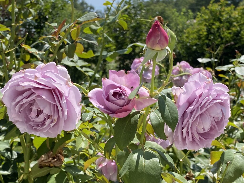 でも今年のノヴァーリスは剪定をまぬがれたため、次々に青みがかった薄紫色の花を見せてくれています。