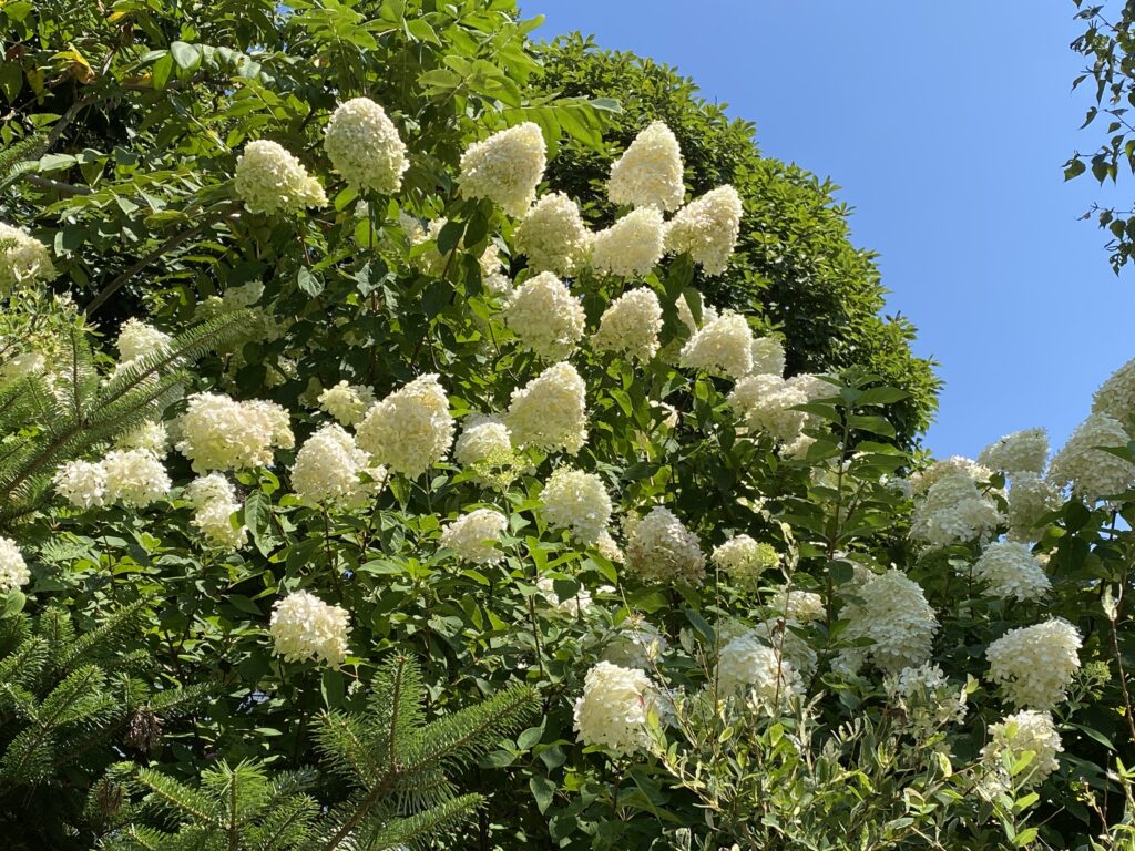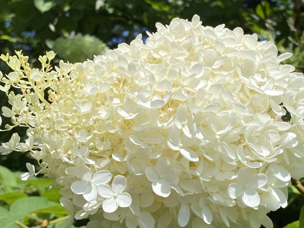 花總もいっぱいつけて、今は緑がかった白。これから徐々にピンクへと変化していきます。