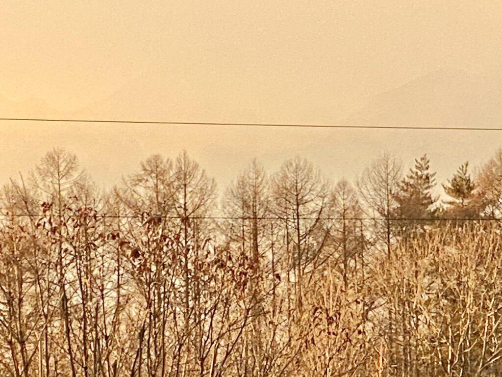 ありがた山の金色林。こんなこと、あんなこと 2026.01.08自然は時々、想像しない風景を見せてくれます。家の中から見えるいつもの風景も、風や雲や時間や気象の具合で、まるで初めて観る感覚になったり。富士山も、時に背が高くなったり、大きく見えたり、ありえないのだけれど横に動いたんじゃないかと思うこともしばしば。今日の金色の朝景も、レアものでした。遠くのカラマツ林が茶色のただの枯れ木のように見える普通も、7時過ぎに見たのは金色林のよう。ありがたい気分にもなります。単純ね。 ブログ村ランキングに参加しています。 下の写真をタップしてくれるとうれしいです。